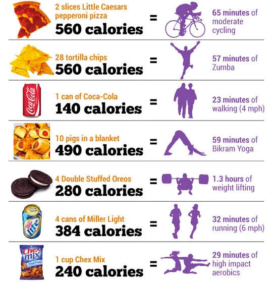 Check out the following images to drive home the comparison between the caloric impact of diet and exercise.